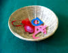 Once the child has learned the sandpaper letters and is making words with the LMA, you might wish to prepare a few baskets, each with a small confetti bag containing a miniature object, each object representing a three-letter word.
